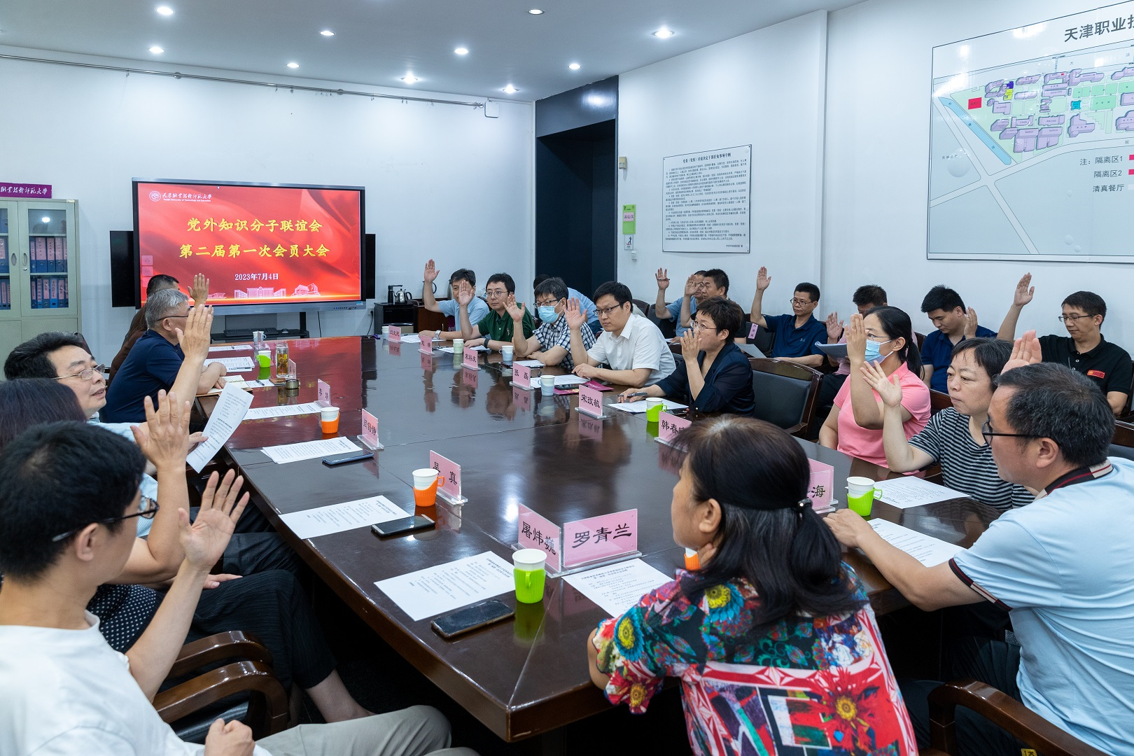 年夜会闻与了校知联会第1届理事会任务讲述,审议并经由过程了《天津任务技能师范年夜教党中学问份子联谊会规则(建订案)》,推举发生了弛磊、弛仕海、李莉、宋改敏、宋裕庆、罗青兰、屠炜巍、韩秋晓、戴琳9位同道为球盟会知联会第两届理事会理事,弛磊被选为第两届理事会会少,宋改敏、宋裕庆、韩秋晓为副会少,李莉为文牍少。第两届知联会国有会员28实,个中无党派人士21人、良好大众党中教员代替7实。