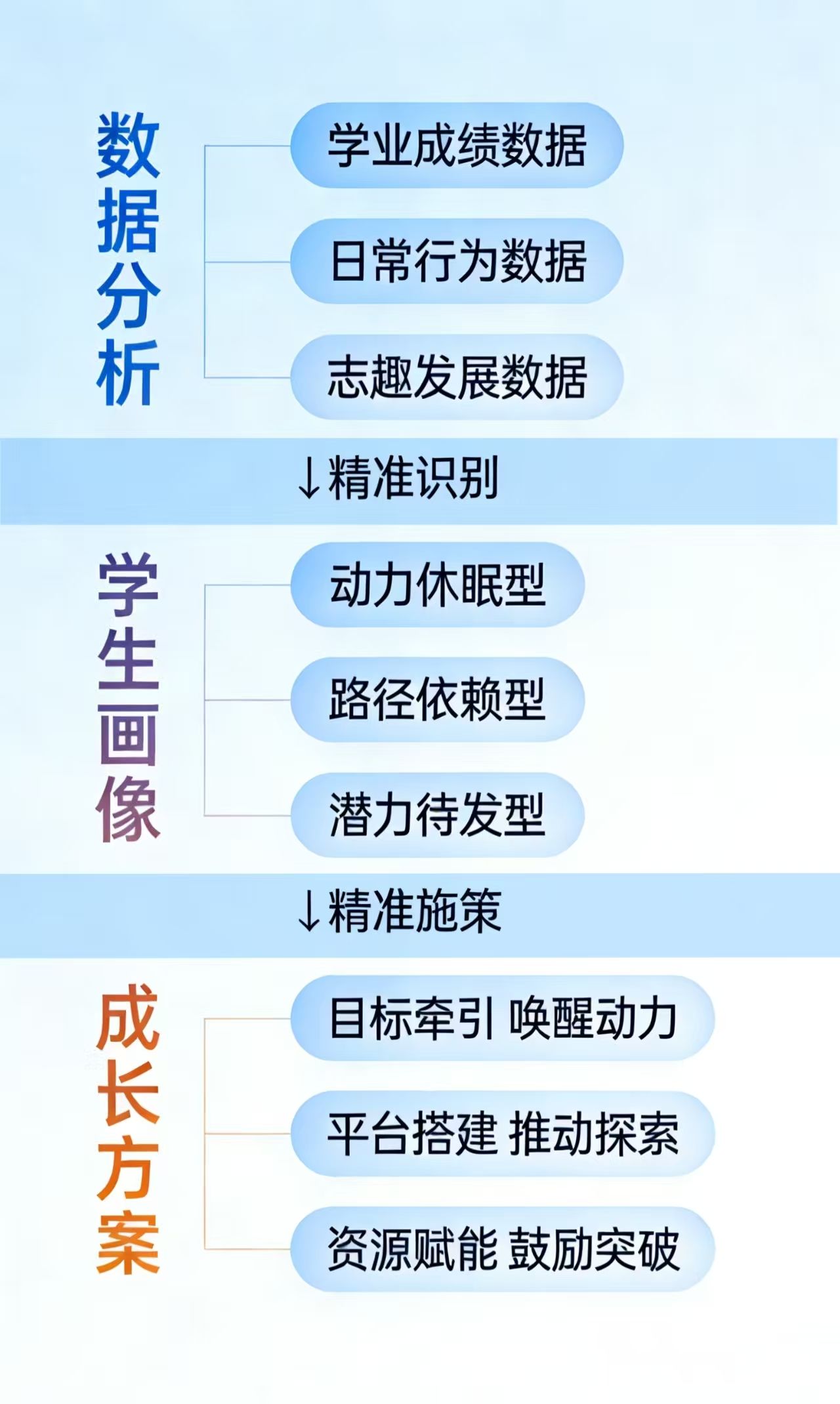 启迪预计:精确取赋能是育人的关头念政任务贵正在精确赋能,成于叫醒浸湿。必需转变“年夜火漫灌”,经由过程多维数据洞悉教死切实形态,完毕“1人1策”的特性化指导。共时,要长